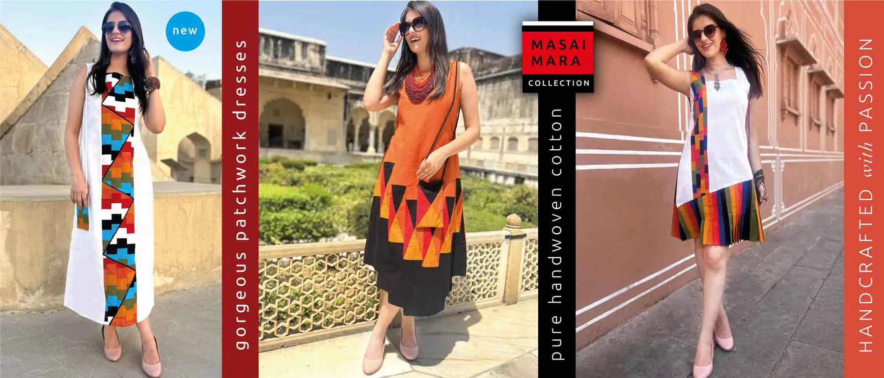 Amazing patchwork dresses in Vibrant Colors made with handwoven cotton