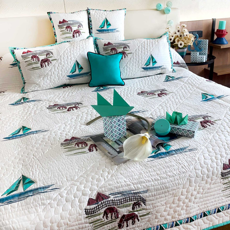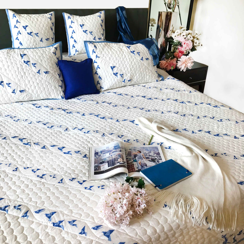 Block Printed and Quilted Bedcovers sets in contemporary styles