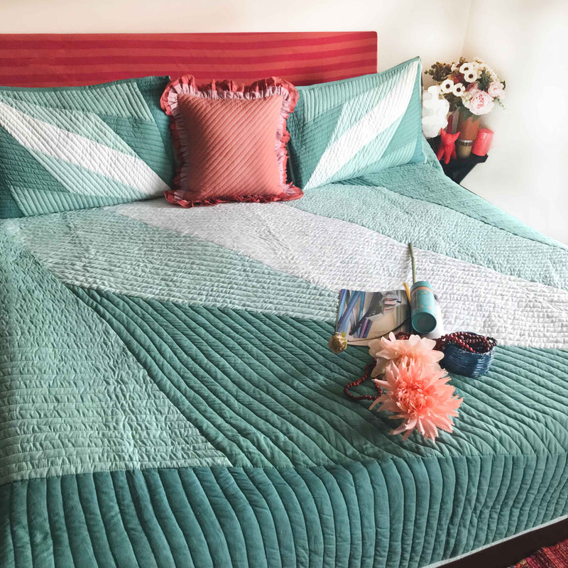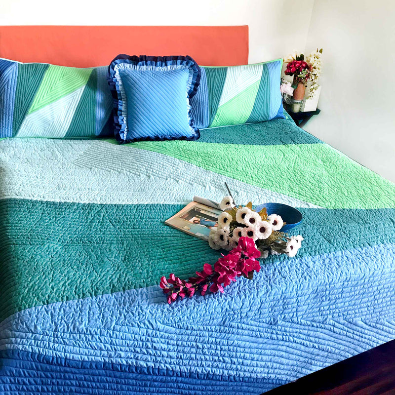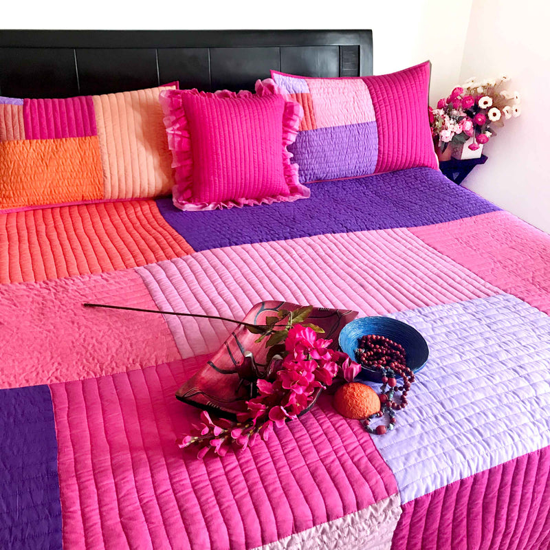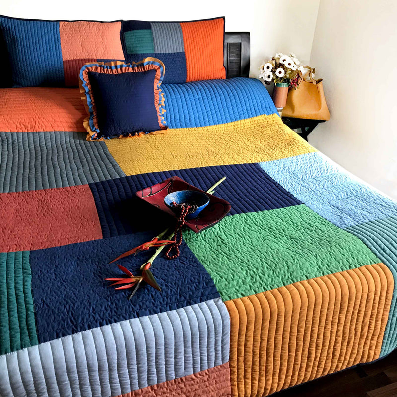 Inspired by the famous colorful houses of Copenhagen, patchwork quilted Bedcover Sets in pure cotton