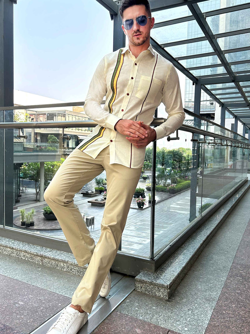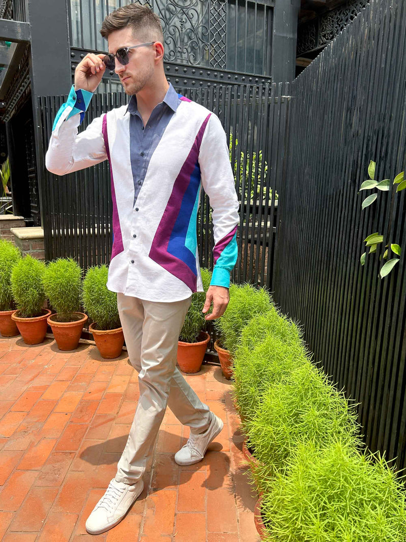 MAXIM AMALFI WONDERS HAND WOVEN COTTON PATCHWORK KURTA SHIRT
