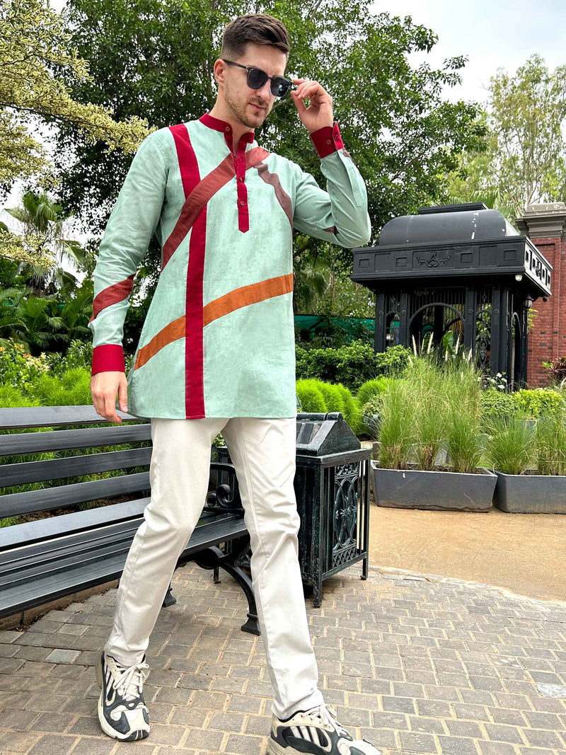 MARCO AMALFI WONDERS HAND WOVEN COTTON PATCHWORK KURTA SHIRT