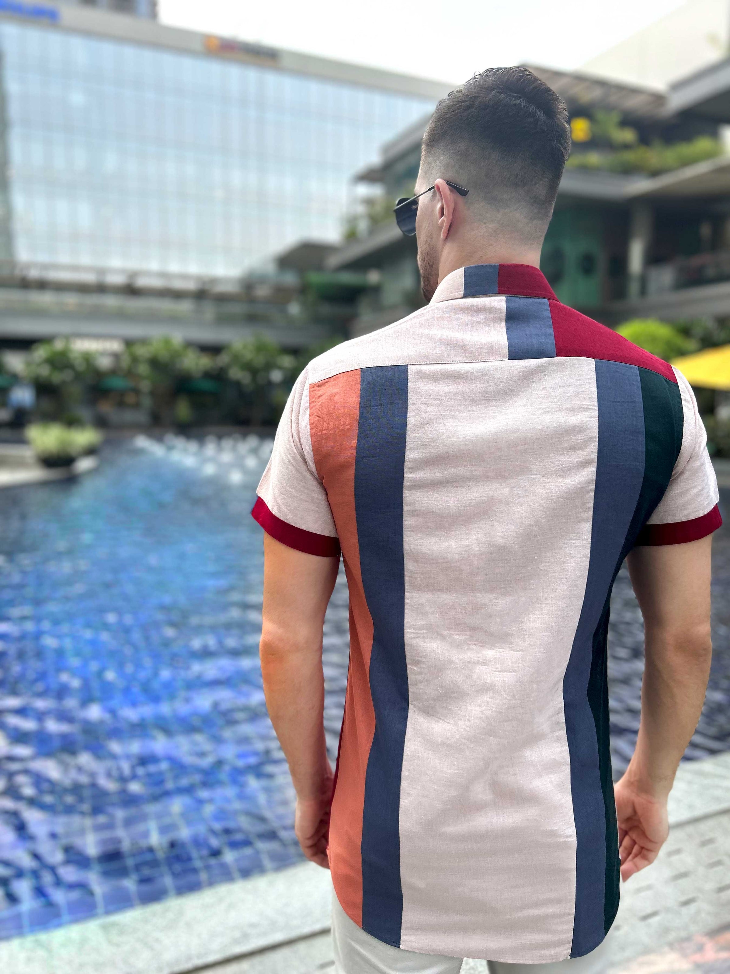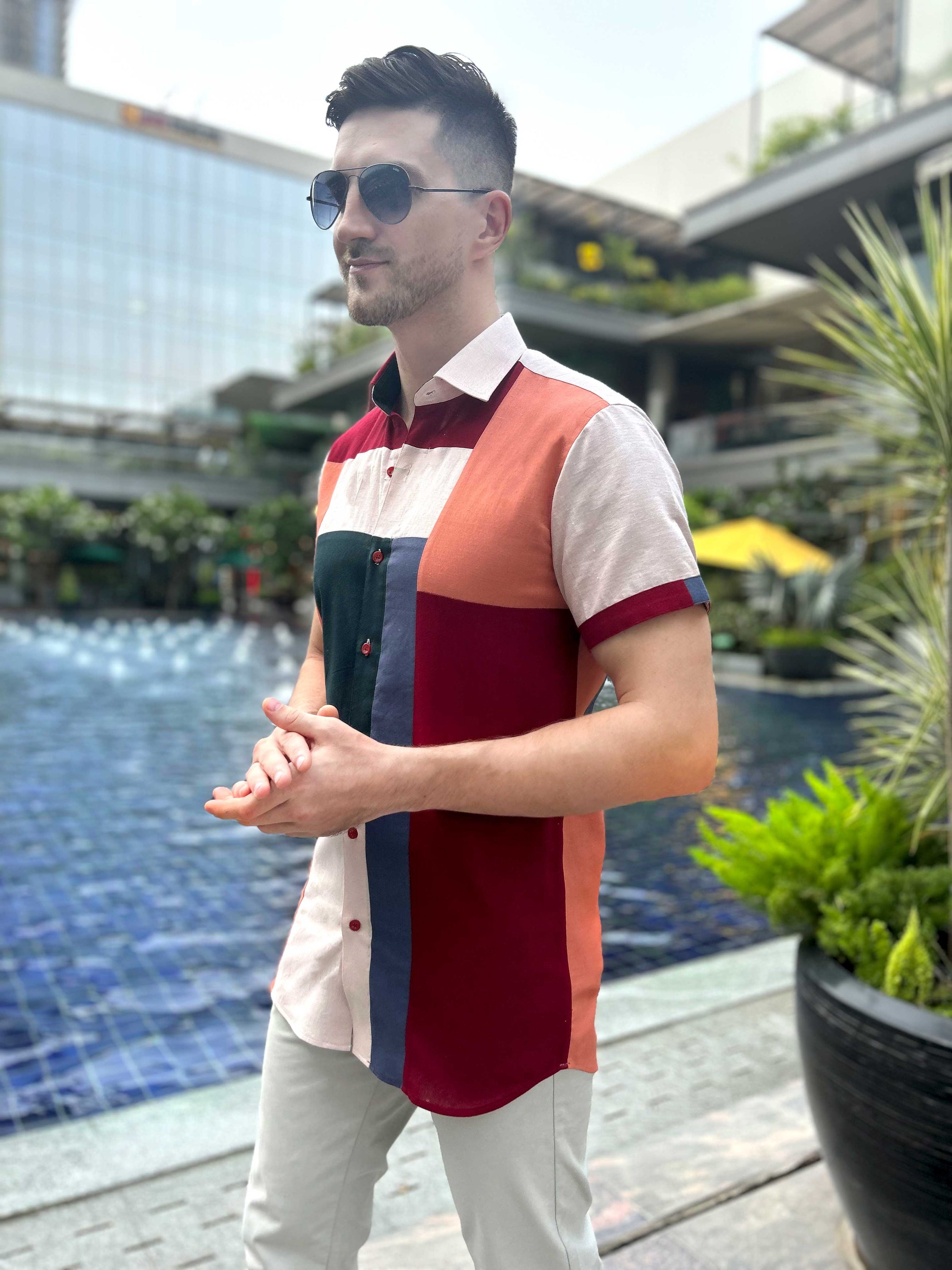 Our 'Amalfi Wonders' collection of men's shirts is inspired by the picturesque and colorful Amalfi coast in Italy. In this collection, we have taken a bold step of designing men's shirts combining colorful fabric in patchwork style to create innovative designs. All the shirts use high quality handwoven cotton and are ideal for all weathers.