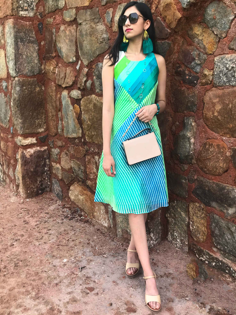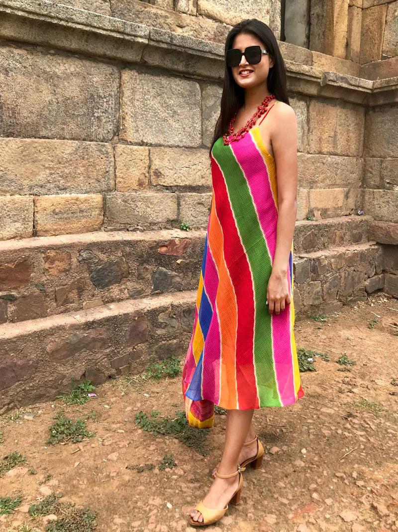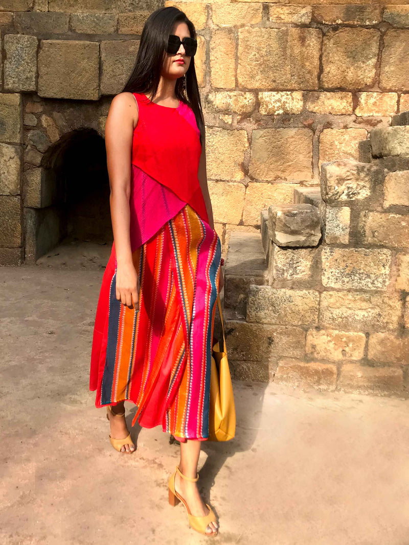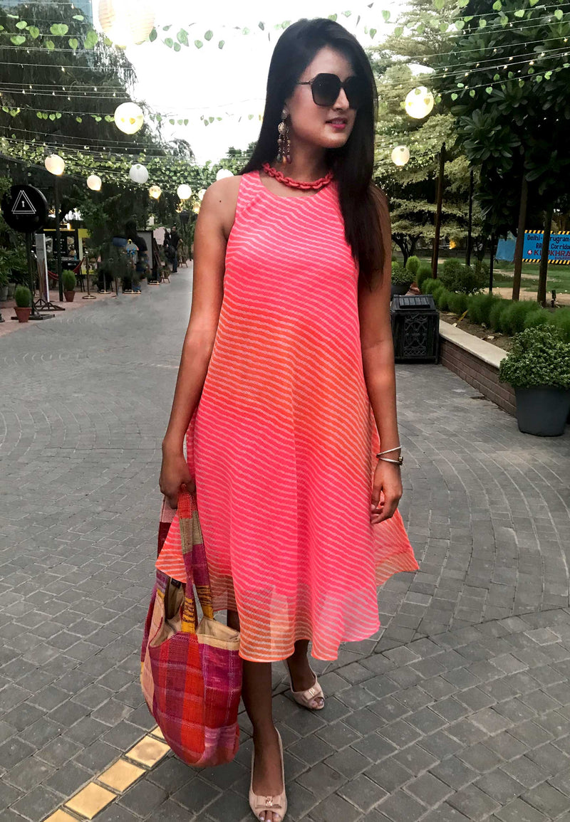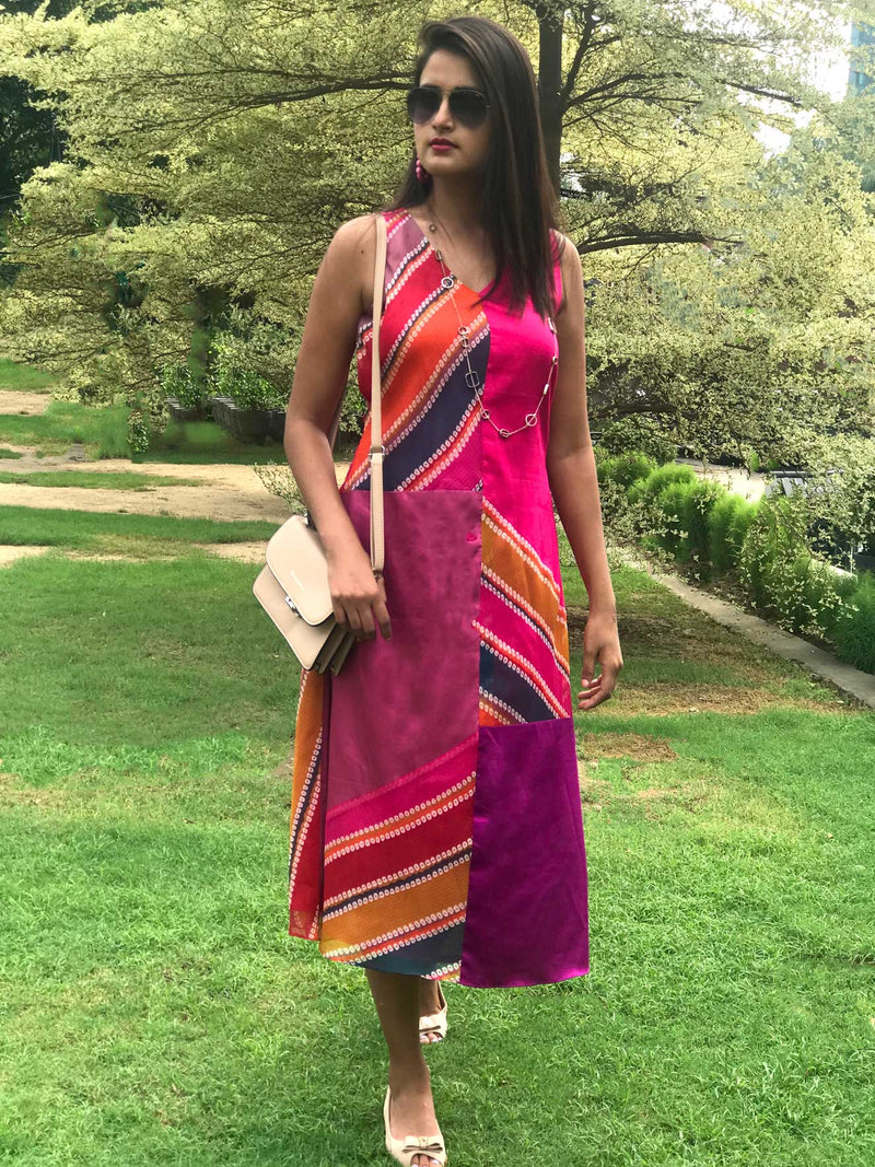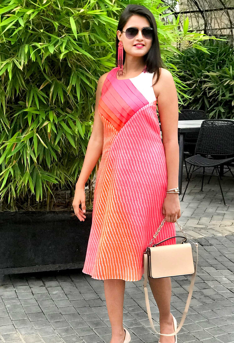 Dresses and Tunic Sets made from Colorful and Striped Kota Doria Fabric - all inspired by the picturesque beauty of Santorini, Greece