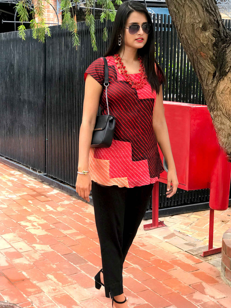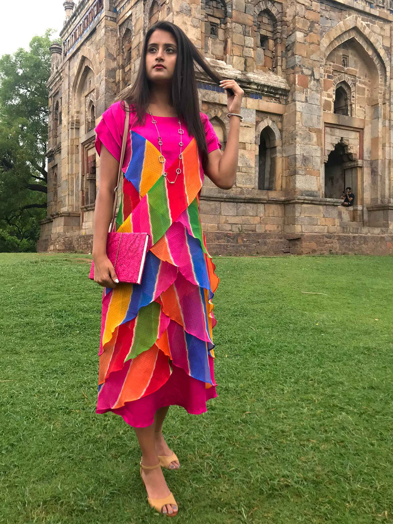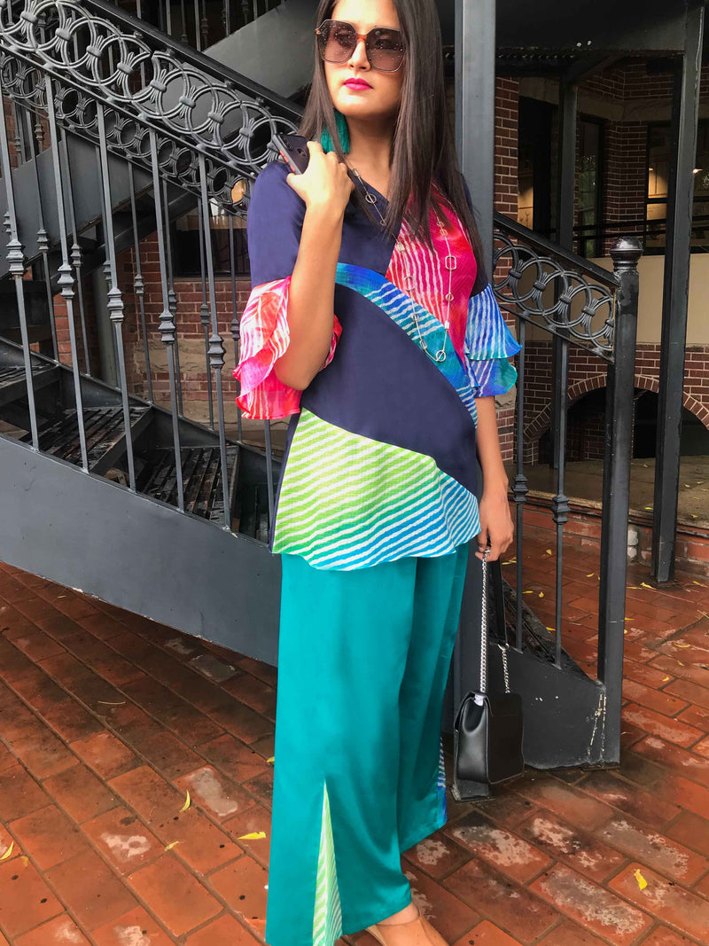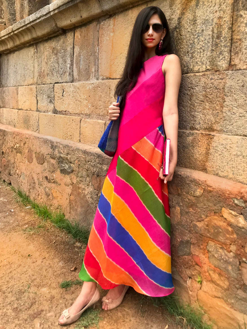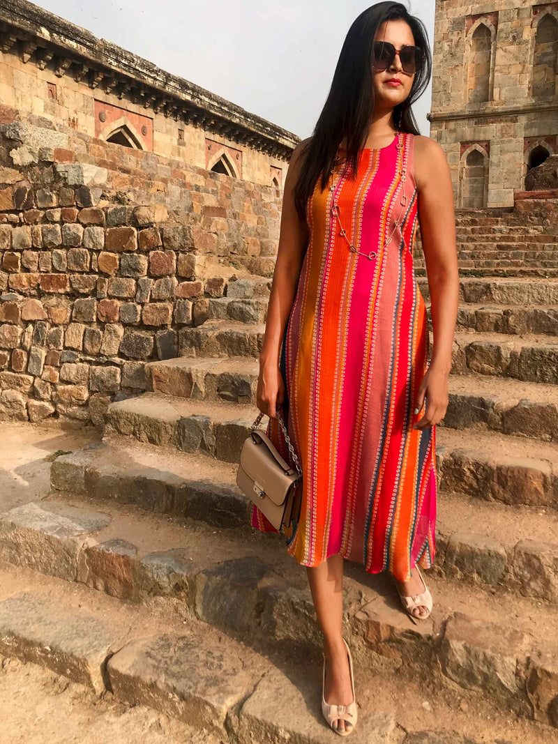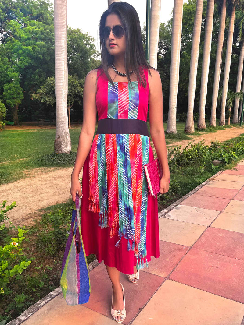 Dresses and Tunic Sets made from Colorful and Striped Kota Doria Fabric - all inspired by the picturesque beauty of Santorini, Greece