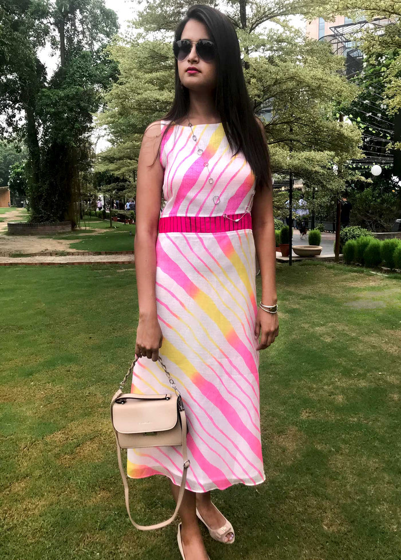 SALLY SANTORINI STRIPES SILK KOTA DORIA DRESS