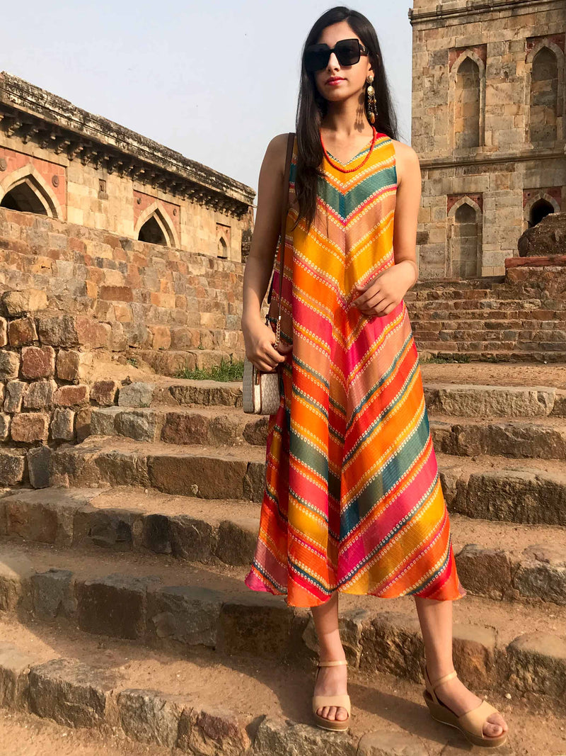 SHERLYN SANTORINI STRIPES SILK KOTA DORIA DRESS