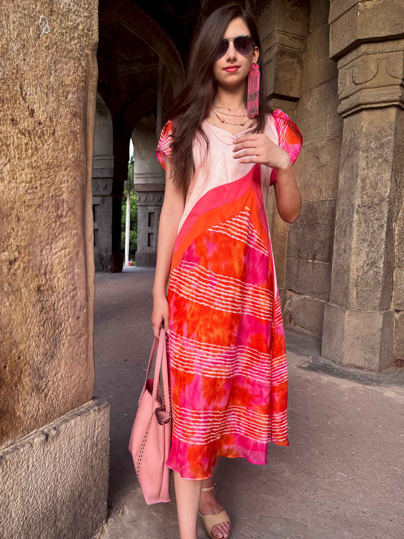 SCARLET SANTORINI STRIPES SILK KOTA DORIA DRESS
