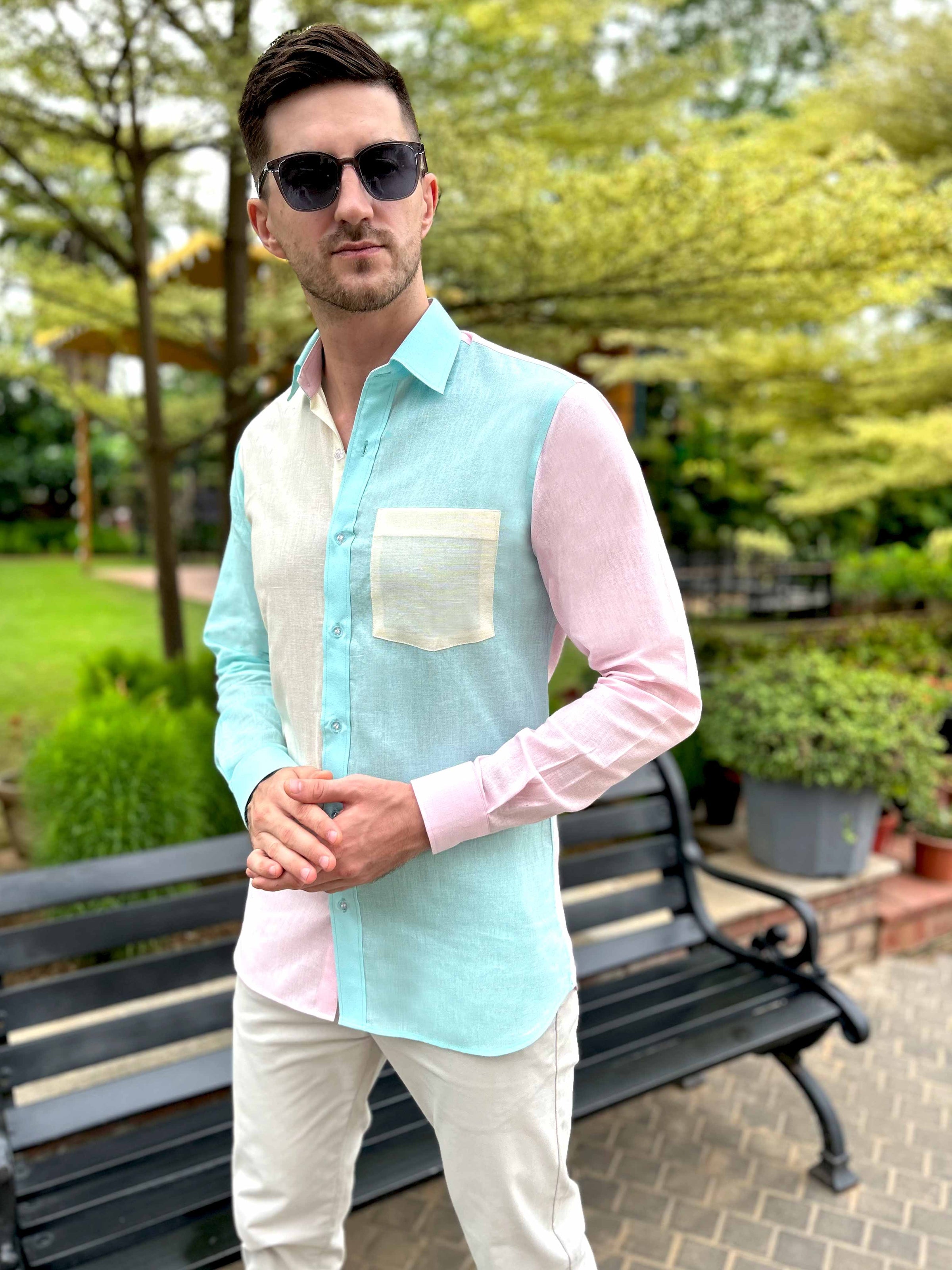 Our 'Amalfi Wonders' collection of men's shirts is inspired by the picturesque and colorful Amalfi coast in Italy. In this collection, we have taken a bold step of designing men's shirts combining colorful fabric in patchwork style to create innovative designs. All the shirts use high quality handwoven cotton and are ideal for all weathers.